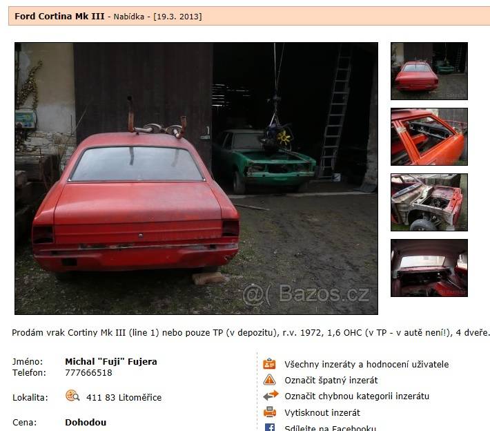 Vozidlo na prodej v severočeském kraji začátkem roku 2013, k vozidlu doklady z line1 (1972) + vrak mk3 na ND