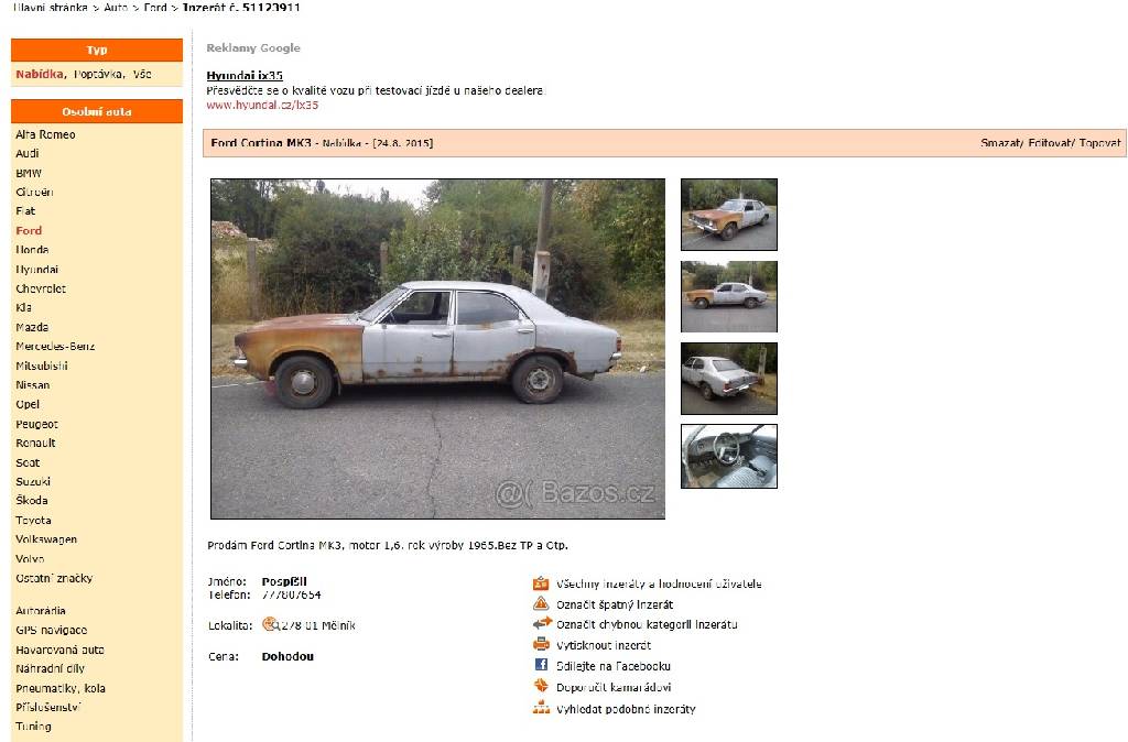 Vozidlo nalezeno v Kralupech nad Vltavou (2014) V roce 2015 na prodej prostrednictvim inzertniho serveru