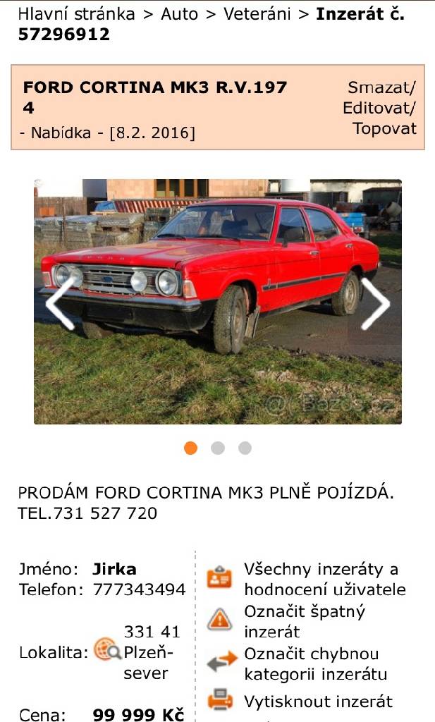 CORTINA MK3 Registr vozidel v ČR