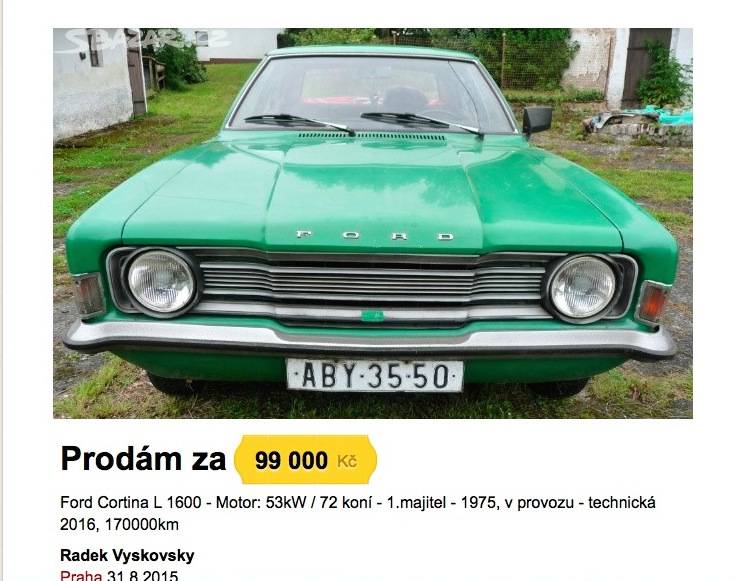 vozidlo na prodej v 8/2015 prostřednictvím inzertního serveru od prvního majitele
