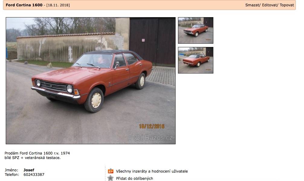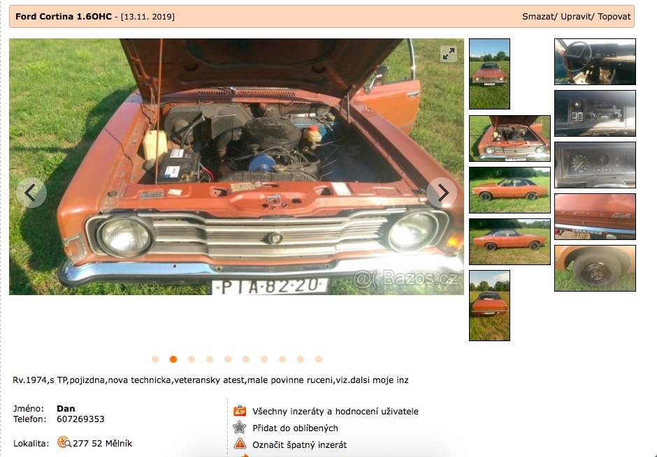 vozido nabízené v inzerci 11/2018, následně o rok později v roce 2019 znovu, ve středních čechách