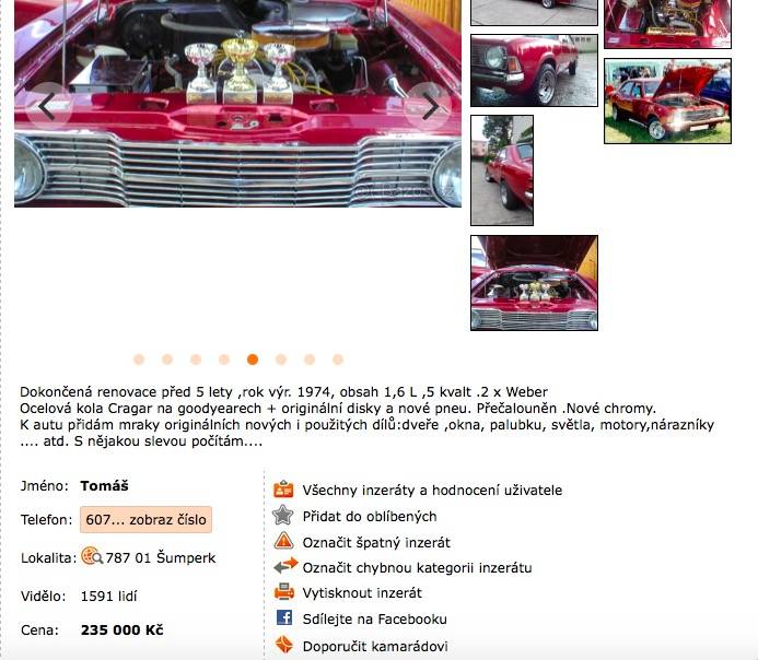 Vozidlo na prodej v severomoravském kraji, obsahuje prvky verze L1 (světla, palubní deska)