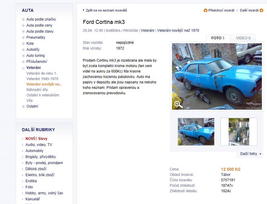 CORTINA MK3 Registr vozidel v ČR