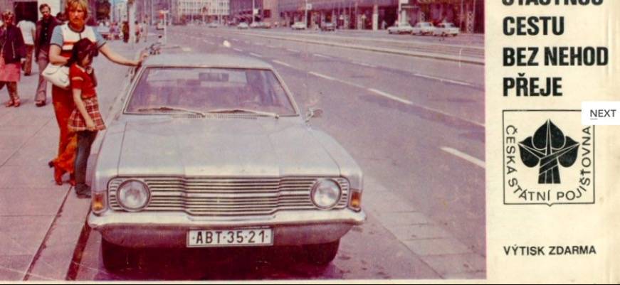 vozidlo na dobovém reklamním materiálu České Pojištovny