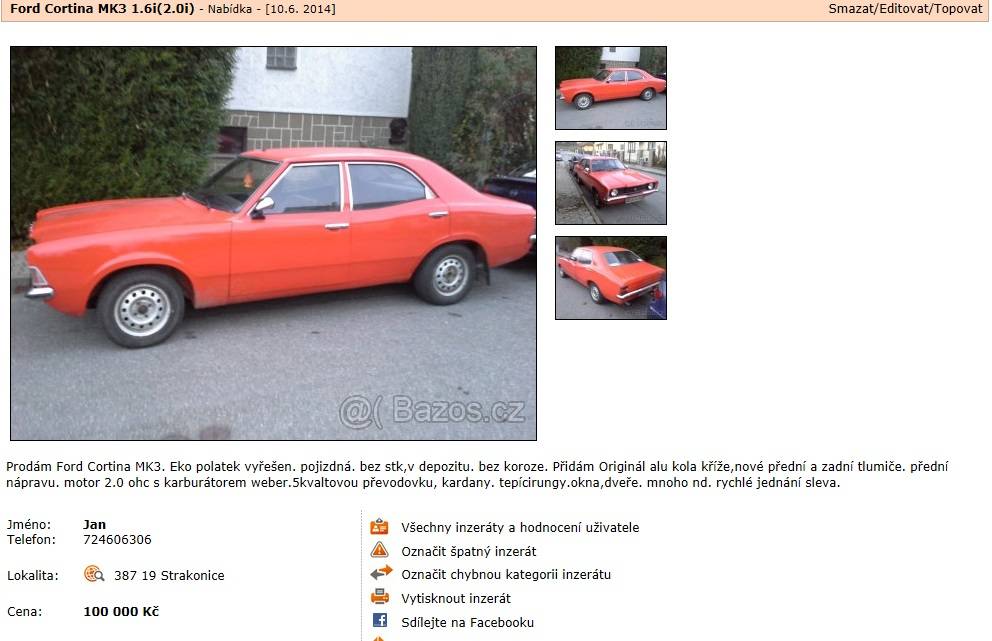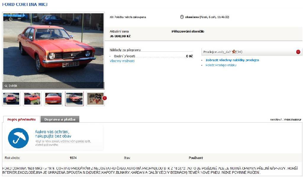 Vozidlo bylo na přelomu let 2008 a 2009 na prodej v Severomoravském kraji (Stonava). Vozidlo mělo v době prodeje vyměněný motor za 2,0 ze sierry (původní zadřený) a mělo nový lak vozidlo na prodej prostřednictvím aukčního portálu v 9/13 a následně na inzertním portálu znovu na prodej v 6/14, v jihočeském kraji