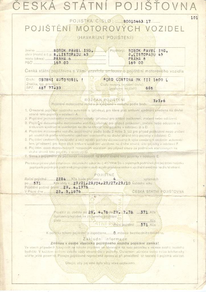 Vozidlo poškozeno při dopravní nehodě v roce 2001, další osud vozidla je neznámý K vozidlu dohledán zajímavý dokument o pojištění